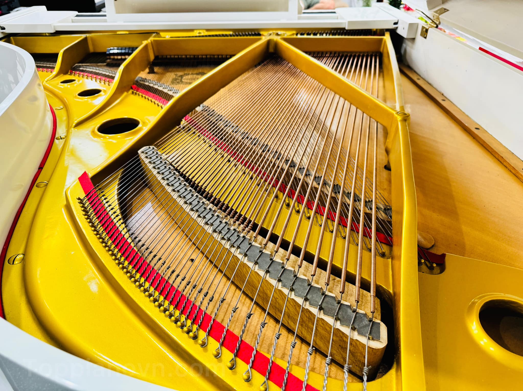 | Khung đàn & soundboard | Khung V-Pro thép gang, bảng cộng hưởng gỗ tùng nguyên bản — cho âm thanh vang, bền bỉ. |
